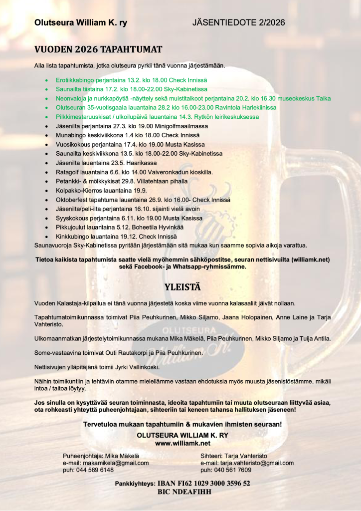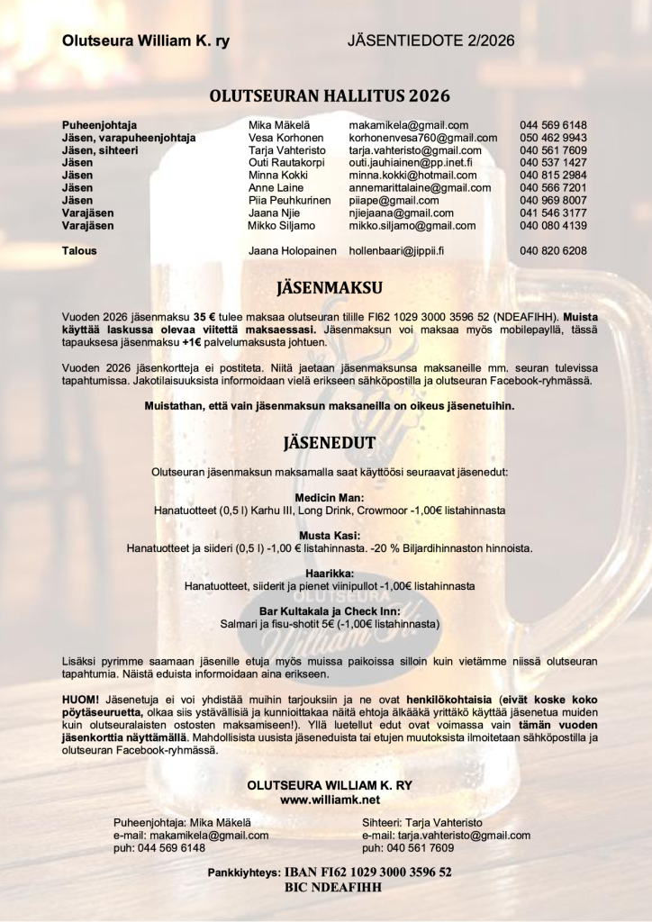 2026 uusin jäsentiedote: